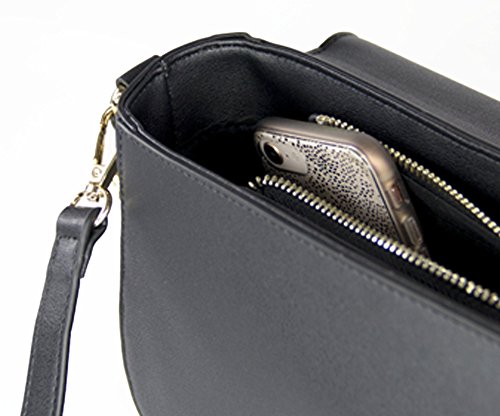 - DESIGN: Features: adjustable shoulder strap (11.5" - 19"), zipper closure, zipper pocket and two phone sized pockets inside. -- It can easily be dressed up or down - so much versatility, the possibilities are endless!