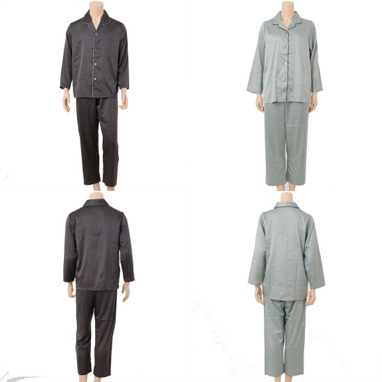 보셀리 폴리 샤무즈 원단 남여 기본 파자마. 배색원단 파