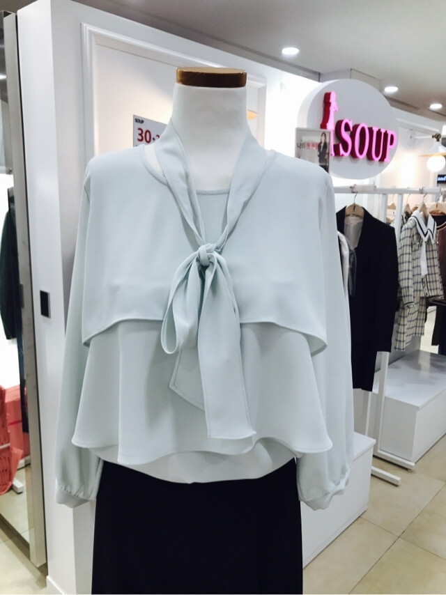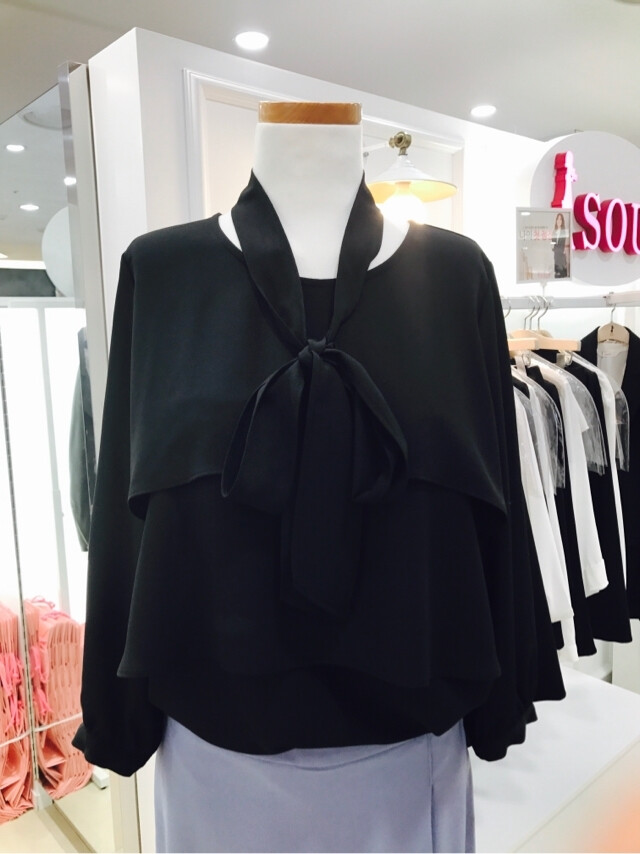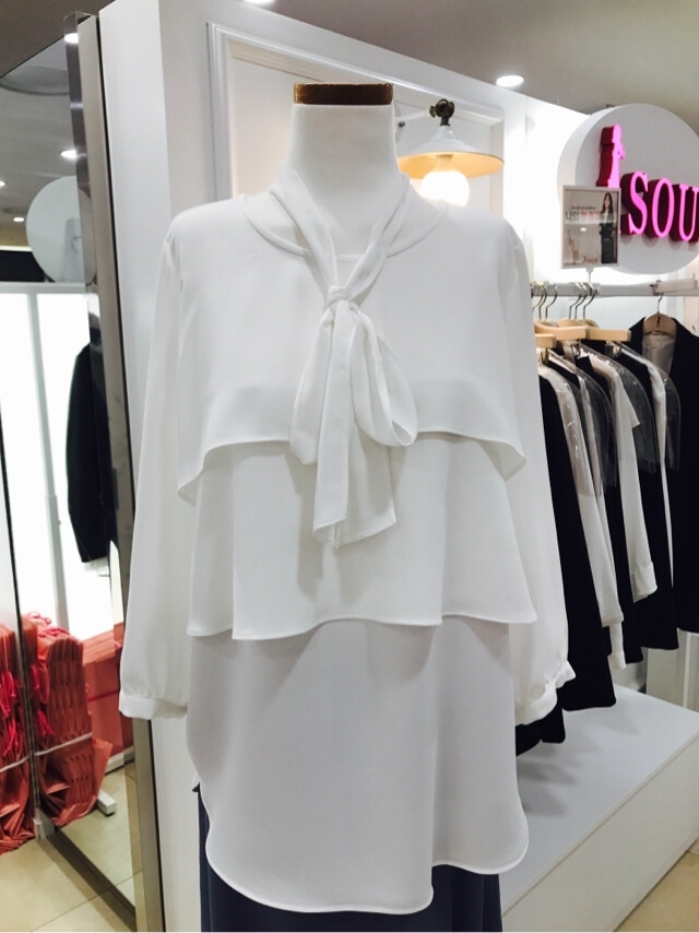 스카프 리본이 있어 다양하게 연출가능하고 쉬폰으로 하늘하늘 가볍게 입기좋은 로맨틱스러운 블라우스입니다