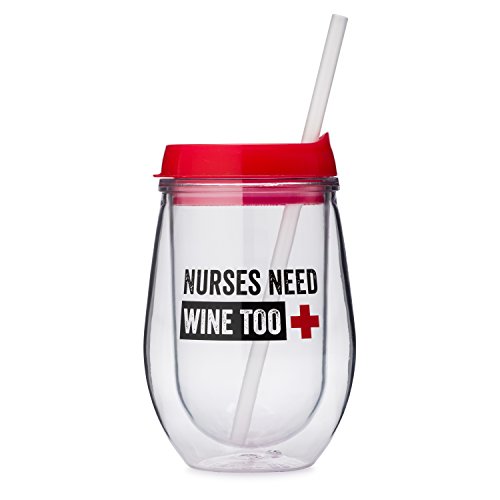 FUNNY MESSAGE: "Nurses Need Wine Too" printed in black and red and sure to make any nurse laugh