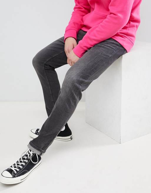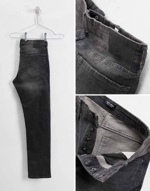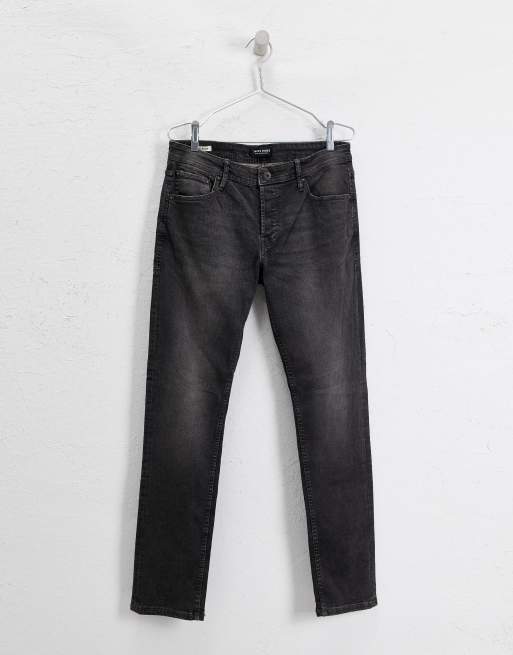 Jack & Jones Slim Taper Jeans In Washed Black Denim