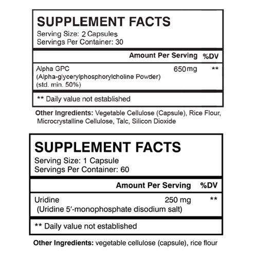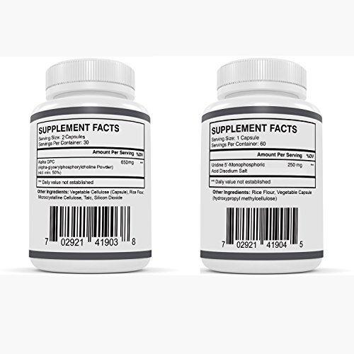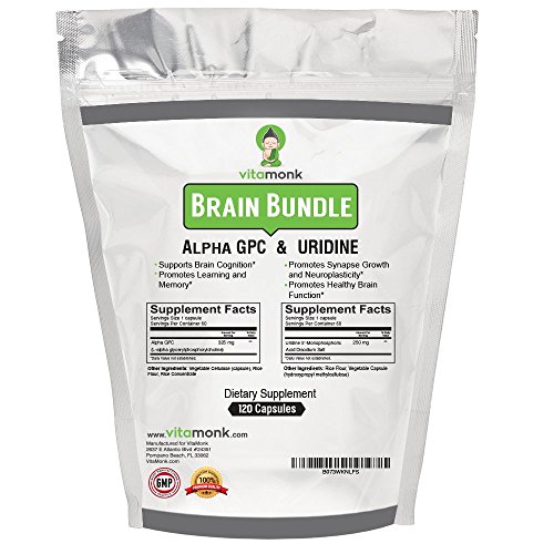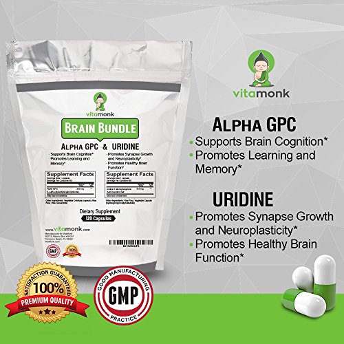 -. Feature : NATURAL BRAIN ENHANCEMENT - Alpha GPC (or alpha glycerophosphocholine ) is a phospholipid that has been shown to support cognition and mental performance in a healthy way. This nootropic works to increase brain activity of acetylcholine neurotransmission. It has the greatest bioavailability of ANY choline supplement, and is the only choline source that can easily cross the blood-brain barrier, thus making it the preferred source of choline for brain health. / SUPPORTS HEALTHY BRAIN FUNCTION - Uridine promotes healthy brain function and increases cdp-choline levels in the brain. This helps facilitate brain health and may provide effects such as improved memory, alertness, concentration, multi-tasking and problem solving ability in healthy individuals. Uridine can also help improve mood by increasing dopamine production. / PROMOTES SYNAPTIC PLASTICITY & FLUID INTELLIGENCE - Uridine has been shown to promote both short-term and long-term memory. Some studies even sested that it can improve IQ and fluid intelligence. Uridine works well in conjunction with Omega-3 fatty acids and choline from Alpha GPC to create synaptic connections and neural pathways in the brain. It's a key building block of RNA. / MENTAL CLARITY & FOCUS - Our Alpha GPC supplement may help increase alertness, improve concentration and boost your level of focus. It may also improve problem solving skills, analytical thinking, and fluid intelligence. VitaMonk's Alpha GPC capsules are dosed at 325mg compared to only 300 mg per capsule of our competitors. / 100% MONEY BACK GUARANTEE - With our Alpha GPC & Uridine bundle, you'll get the highest bioavailability supplements (and no magnesium stearate). Purchase it now with no financial risk whatsoever. We guarantee results or you will get your money back. We're confident that you will love our product. So click the 'Add to Cart' button and start enhancing your brain!