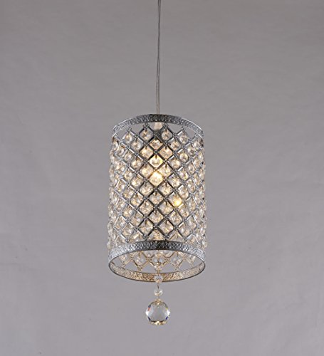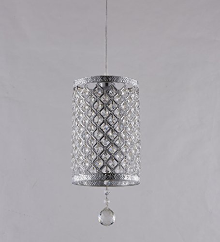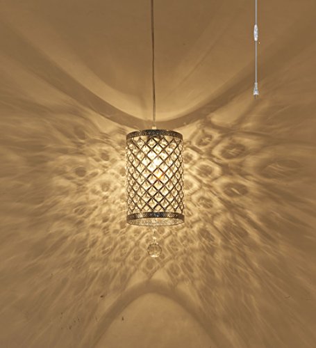 Surpars House Plug in Pendant Light Silver Crystal Chandelier with 17' Cord and On/off Switch in Line