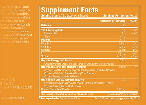 -. Title : Natural Force® Matcha Ignite USDA Organic Pre Workout *ORGANIC ENERGY DRINK POWDER* Paleo, Vegan, Non GMO, Gluten Free, Natural Pre Workout