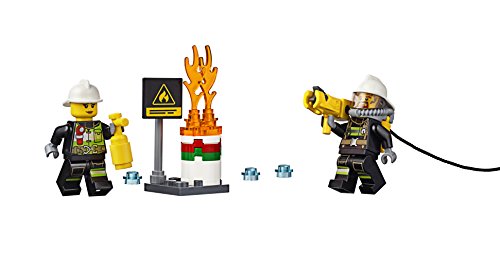 -. Feature : Features a Fire Ladder Truck with extending ladder and hose, plus an oil barrel / Move the Fire Ladder Truck into position, extend the ladder and get above the fire / Accessory elements include a fire extinguisher, shovel, circular saw, water studs and an axe / Fire Ladder Truck measures over 3" (8cm) high, 7" (20cm) long and 1" (5cm) wide / Pull out the fire hose and shoot the water elements with the stud-shooting function to put out the fire