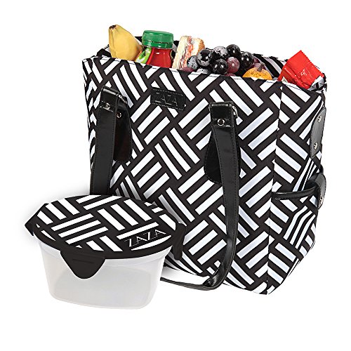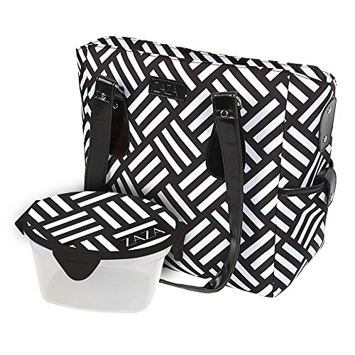 ZaZa Tote with 5 Piece Food Container, Black/White