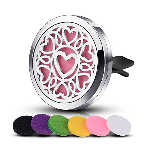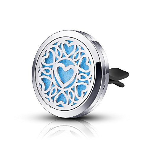 INFUSEU Loving Heart Car Diffuser Vent Clip for Essential Oils Air Freshener Aromatherapy & 12PCS Refill Pads