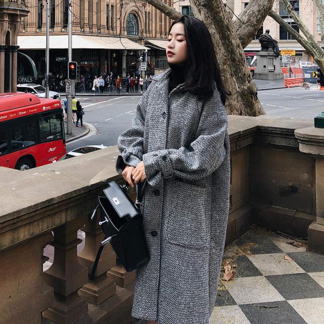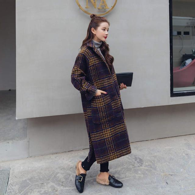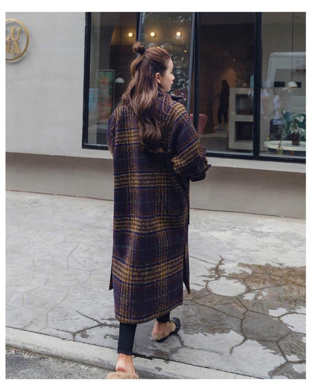 トレンド シンプル チェック柄 ロングコート ゆったり オーバーサイズ スタイリッシュ 秋冬 上品 エレガント S M L XL