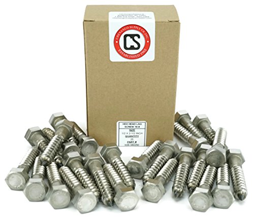 Stainless 1/2 x 2-1/2" Hex Lag Screw (1-1/2" To 5" Lengths Available in Listing), 18-8 Stainless Steel, 25 pieces (1/2 x 2-1/2")