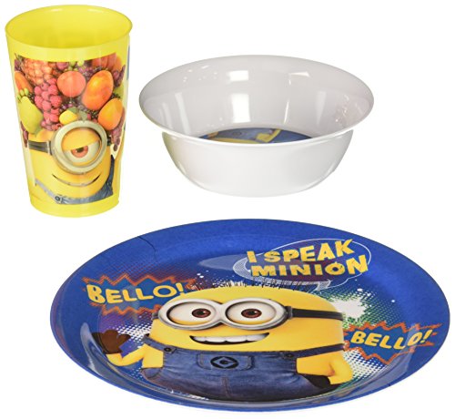 Zak! Designs Plate, Bowl and Tumbler Mealtime Set with Despicable Me 2 Minions Graphics, BPA-free Melamine, 3 Piece Set
