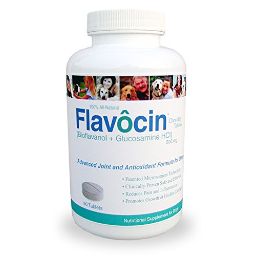 -. Feature : Flavocin - Chewable Nutritional Vitamin Supplement for Canine Hip and Joint Arthritis Pain Relief for Dogs that taste like a treat with dosages for Small, Medium and Large Dogs. Contains 90 chewable tablets. / DOG ARTHRITIS SUPPLEMENTS that contains a blend of powerful micronutrients and antioxidants that fight dog arthritis, free radicals, joint problems, and promotes overall dog health. / Contains GLUCOSAMINE HCl...which is 99% Pure. Not the Glucosamine Sulfate commonly found that is only 26% Pure so provides Best Arthritis Pain Relief for Dogs. / Flavocin's Micronutrient Ingredients Have Been Tested in well Controlled Clinical Studies With Positive Results and MADE IN THE USA. / Since 2004, Flavocin Canine GLUCOSAMINE CHONDROITIN FOR DOGS has achieved excellent results for thousands of customers, and it is backed by a 60-Day, 100% Satisfaction Guarantee.