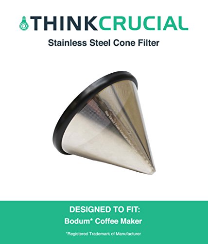FITS ALL CHEMEX, HARIO BODUM POUR OVER MODELS This washable reusable Stainless Steel Cone Coffee Filter with a lifetime 100% guarantee, fits all Chemex, Hario Bodum pour over systems. With this permanent filter you never need to buy paper filters again. Since it's made of stainless steel, there are no toxic chemicals involved in the brewing process. DON'T WASTE YOUR MONEY ON CHEAP KNOCKOFFS This Think Crucial Cone Filter can be used thousands of times and last for years to come. These filters are really easy to clean, and no filters go to the landfill. You'll have clean delicious cups of coffee every time. This filter allows for more oils and flavor to get through to your brew! It's also easy to insert - our cone filter will not rumple or fold, and it's very easy to use. Cleaning this filter is simple: for optimal performance, we recommend that you clean the filter after each brew. To clean out all the tiny holes in the filter, give it a rinse upside down under a faucet using cool water! This is a generic product designed and engineered in the United States by Think Crucial. This is not a Bodum®/Chemex®/Hario® OEM product and is not covered under any Bodum®/Chemex®/Hario® manufacturer's warranty. The Bodum®/Chemex®/Hario® brand names and logos are the registered trademarks of their respective owners. Any use of the Bodum®/Chemex®/Hario® brand name or model designation for this product is made solely for purposes of demonstrating compatibility. 0 |