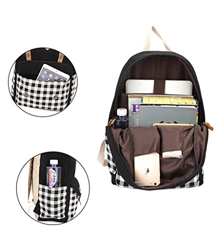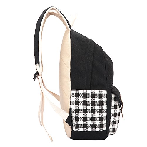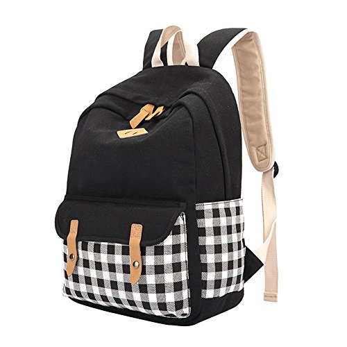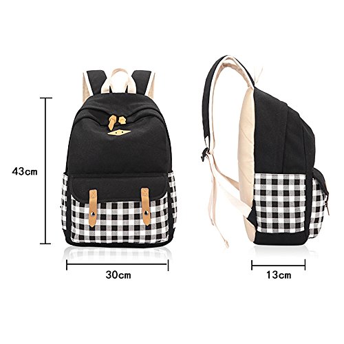 -. Title : Yiuswoy Korean Stil Gitter Leichtgewicht Leinwand Taschen Rucksack Schultaschen Freizeitrucksack Reisetaschen Mit Laptop