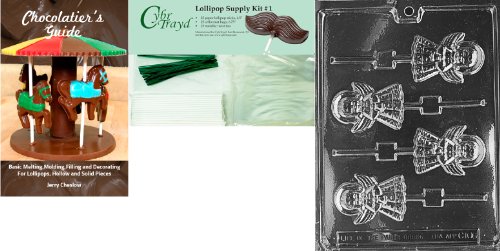Cybrtrayd 45stK25GRBk-C106 Angel Lolly Chocolate Mold with Chocolatier's Bundle of 25 Lollipop Sticks, 25 Cello Bags, 25 Green Twist Ties and Chocolatier's Guide