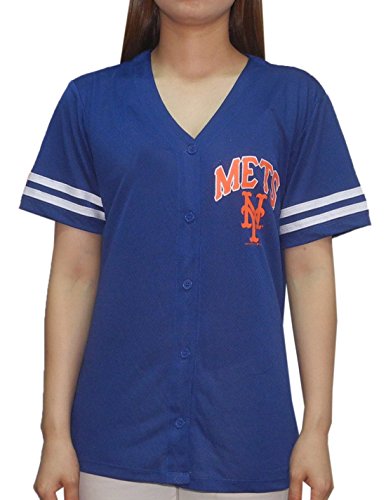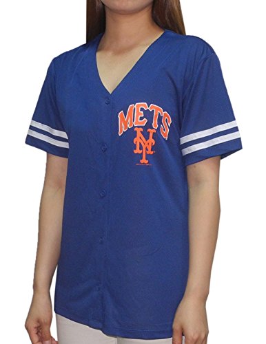 MLB NEW YORK METS WOMENS ATHLETIC DRI-FIT BASEBALL JERSEY M BLUE