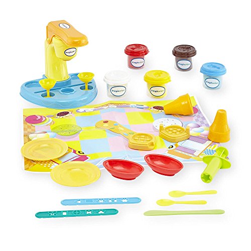 Set up your very own ice cream parlor, and serve up the sweetest treats in town with the Imaginarium Glitter Dough Ice Cream Set. Make your favorite tasty-looking treats from ice cream to waffles and cake with molds, tools and a pretend soft-serve ice cream swirl. Add glitter for more creative confections and then decorate each plate for a flawless execution. The included playmat is perfect for rolling, squishing and cutting your dough.Feature