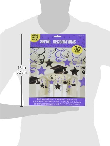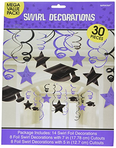 Amscan School Colors Graduation Party Swirls With Mortarboards and Diplomas Ceiling Decorations (30 Piece), Purple/Black, One Size