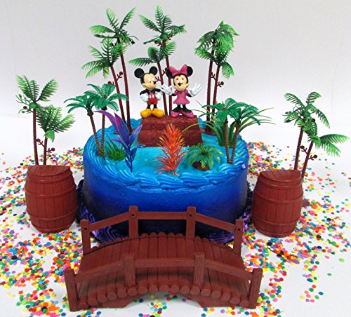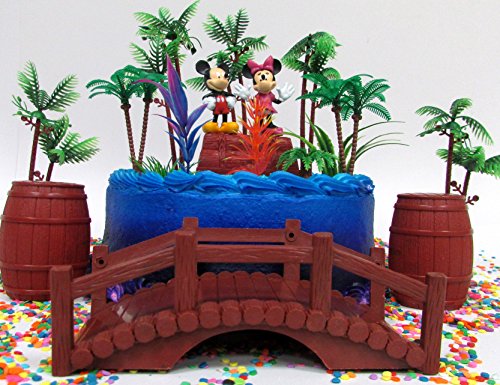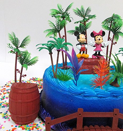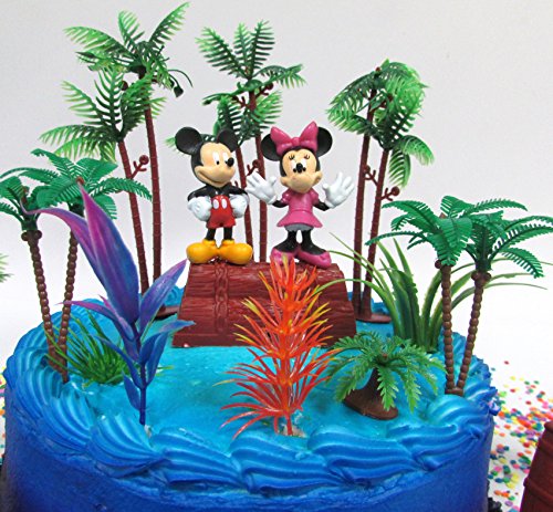 Mickey Mouse Clubhouse Tropical Hulu Themed Mickey and Minnie Mouse Birthday Cake Topper Set with Figures and Decorative Themed Accessories