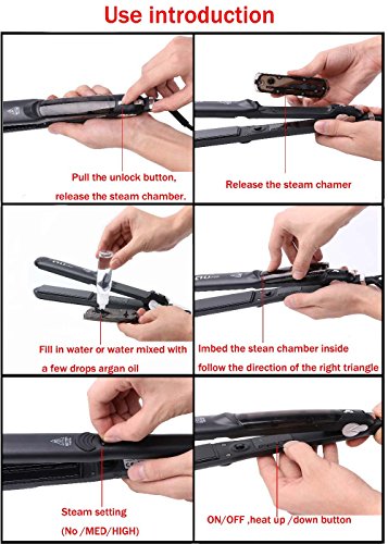 ACTIVATE STEAM FEATURE: CHJPRO hair straightener is designed with newest steam function to straighten thick or coarse hair, makes your hair shine and eliminates the frizz. Your hair will be moisture and shine back by using the cold steam conditioning while you straighten.