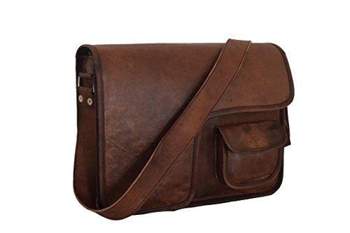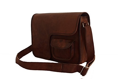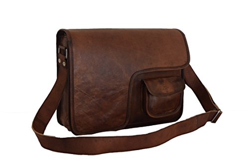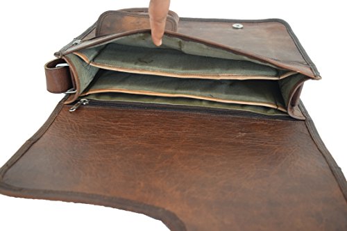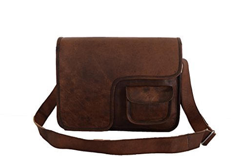 -. Brand : Vintage Craft -. Color : Brown -. Department : mens -. Feature : 13x10" Real Brown Leather Messenger Bag / 1 front small pocket / 1 front zip pocket under flap and 1 inside zip pocket / 2 padded partitions / 1.35" wide and 58" long adjustable leather shoulder strap -. ProductGroup : Apparel -. ProductTypeName : LAGE -. Size : M-Medium -. Title : 13x10" Real Brown Leather Messenger Bag Satchel Cross Body Bag College School Bag