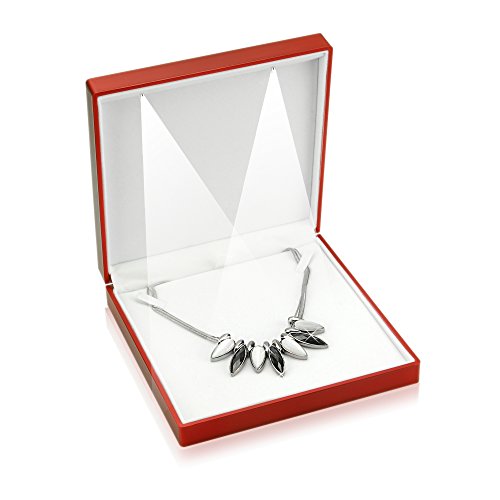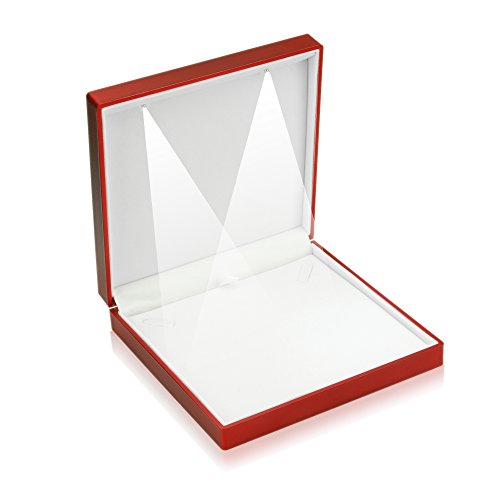 Geff House Jewelry Large Necklace Presentation Display Gift Box with LED Light (Red)