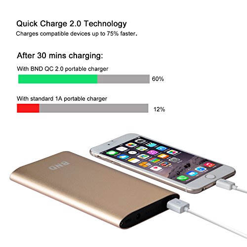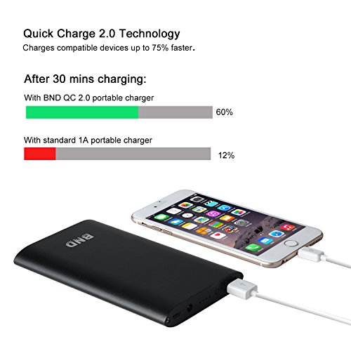 -. Binding : Wireless Phone Accessory -. Brand : BND -. Feature : Quickly full-charged: It takes Only about 16 minutes to be fully charged that you can use it in a short time and don't need to wait anymore.Notice: To reach this function, pls do connect the adapter from the DC port to the Fast port of the power bank / Pocket-size power bank: Ultra-slim design with a hard plastic & aluminum alloy construction, solid and portable. Convenient to carry at anytime and anywhere / 2-in-1 function of the Power Adapter with 5 USB ports: It not only can charge your power bank fastly and fully in 16 minutes, but also can charge other 5V USB devices you want, safe your place and time, never need more USB adapters again / Built-in aviation li-polymer and figure LED indicator, safe to use: Easy to know the remaining capacity. Supports over-charged, over-discharged, over-voltage, over-current and short circuit protection, perfectly protects your digital devices from charging accident / Wide Compatibility: Works with smart phones from Apple, Samsung, Google, HTC, Nokia, LG, and most other popular smart phones. Works with iPad, Kindle, Samsung Galaxy, Google Note and most other popular tablets -. Label : BND -. Manufacturer : BND -. PackageQuantity : 1 -. ProductGroup : Wireless -. ProductTypeName : WIRELESS_ACCESSORY -. Publisher : BND -. Studio : BND -. Title : BND Portable charger, Amazing Speed Ultra Slim External Battery Packs