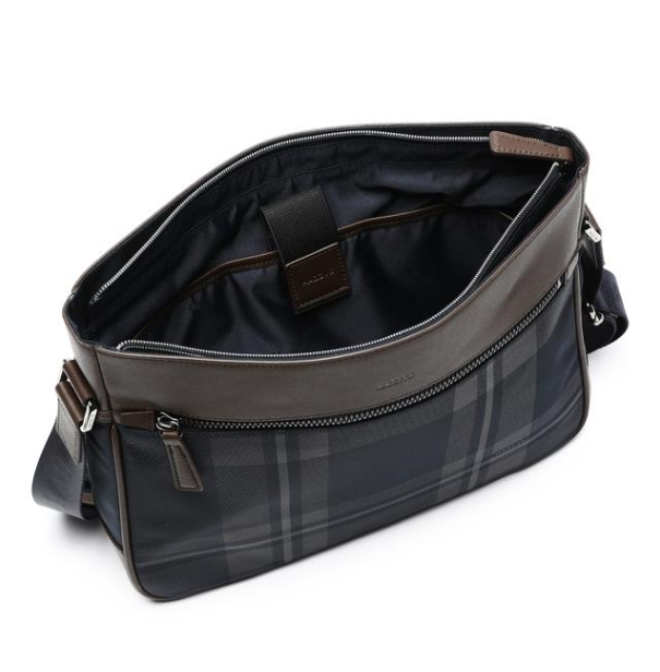 클래식한 체크 패턴 바탕에 소가죽을 배색하여 고급스러움을 살린 크로스백입니다. 나일론 소재를 사용하여 가볍고 튼튼합니다.
