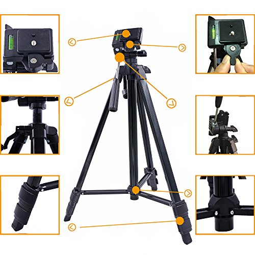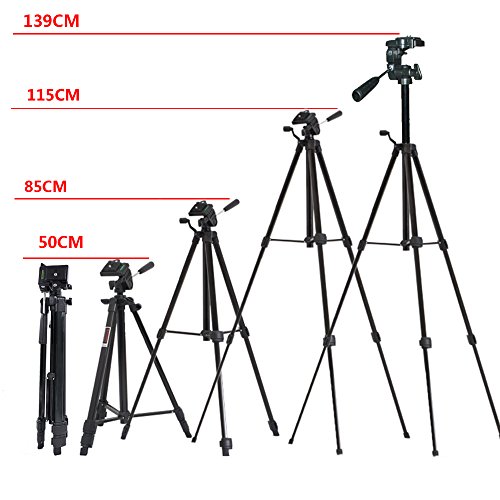 55” inch tripod:Extends to 55” inches / Maximum Height: 20" / 3 section aluminum alloy legs.