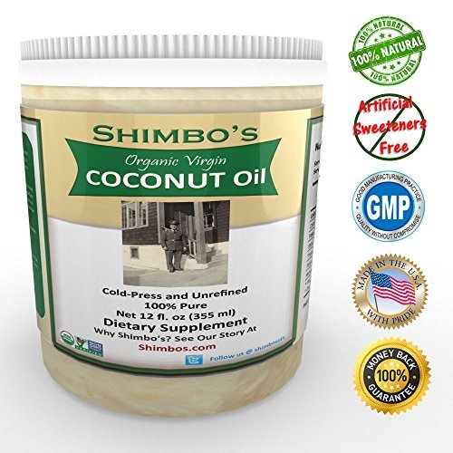 -. Feature : Shimbo's Organic Coconut Oil Is High In MCT Oils. This "good" fat is used by your body for energy and studies suggest that MCT's boost your metabolism. Up To 62% MCT oils! Recent studies show that subjects who used coconut oil lost fat around their waistline. / PERFECT to use when cooking your favorite healthy dishes. Shimbo's coconut oil is organic, non-GMO and perforative free / GREAT for anyone with high cholesterol. Research on coconut oil shows that it can help raise your "good" cholesterol while lowering your "bad" cholesterol / Protects your hair,moisturizes your skin and acts as a natural sunscreen. Shimbo's Coconut Oil is the perfect healthy food / Satisfication and Purity Guaranteed. Shimbo's Coconut Oil is verified USDA organic, NON-GMO and preservative free. Love the taste our your money back. Serving Size 1 tablespoon