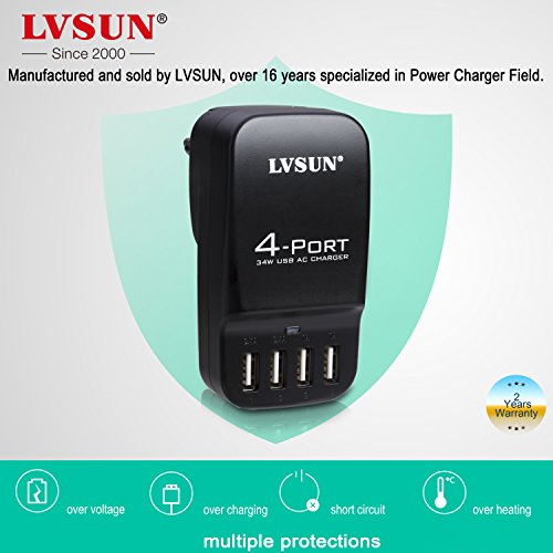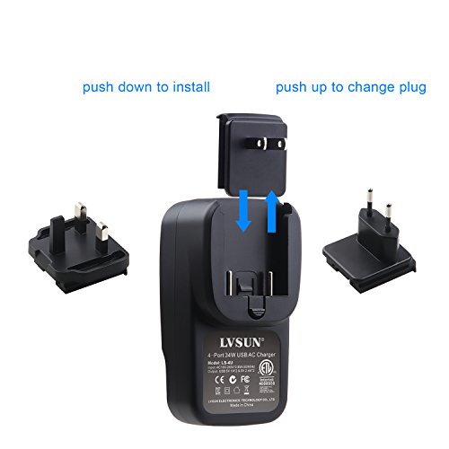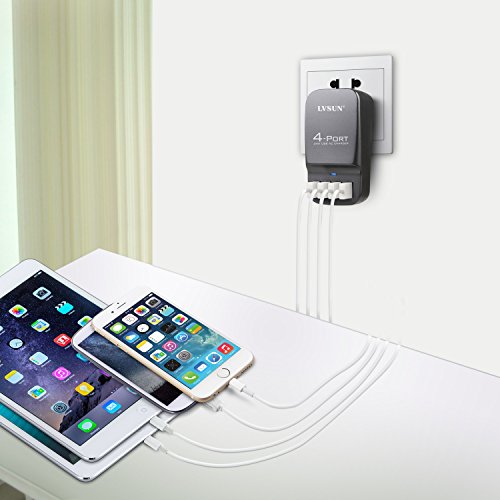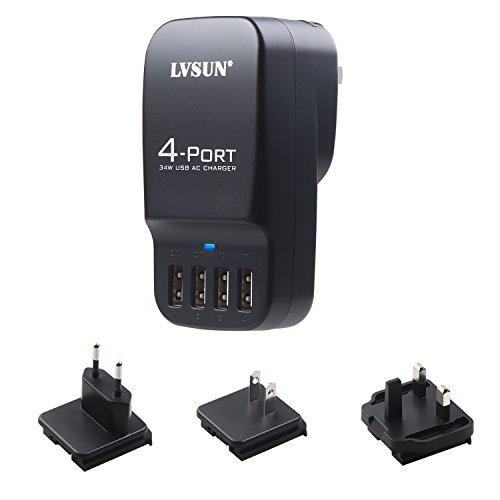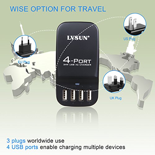 WHAT YOU GET: 4 port USB wall charger includes US EU UK Plugs, 2 years guarantee and satisfied customer service. Get this wall charger before travel!
