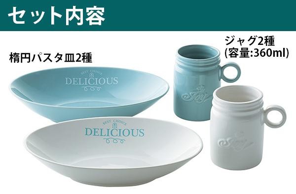 | サイズ | 楕円パスタ皿:W26×D17×H5cm、ジャグ:Φ8×H11cm 個装サイズ:27×26×9cm |