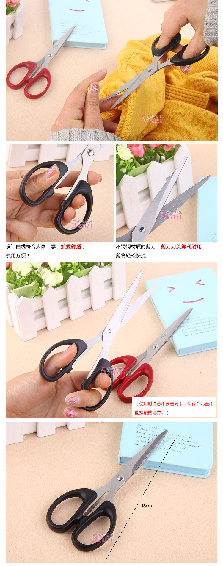 * Classic design was versatile scissors, simple and elegant design, the classic black and red, stainless steel with plastic material, home office essential!