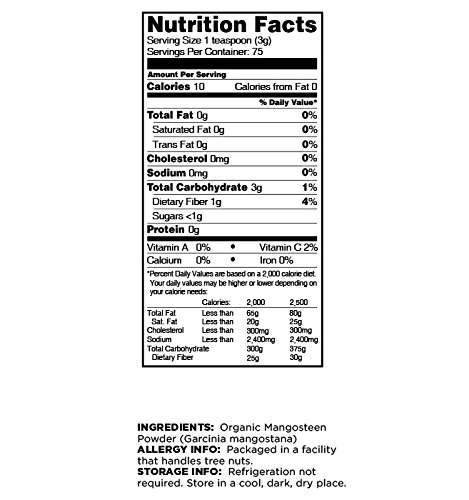 -. Feature : Terrasoul Superfoods Mangosteen Fruit Powder, 8-ounce Pouch / Certified Organic, Non-GMO, Earth Kosher, Raw, Gluten-Free, Vegan / Mangosteen is antioxidant-rich and may be one of the best superfoods to fight free radicals and heal damaged cells / Terrasoul Superfoods sources the freshest and highest quality superfoods from all over the planet. Our mission is to make these amazing, healthy foods available to you at the lowest prices possible while paying our growers and employees fair wages. / 100% Money-Back Satisfaction Guarantee - We stand behind our products and offer a 30-day money back guarantee, backed by an outstanding customer service team.