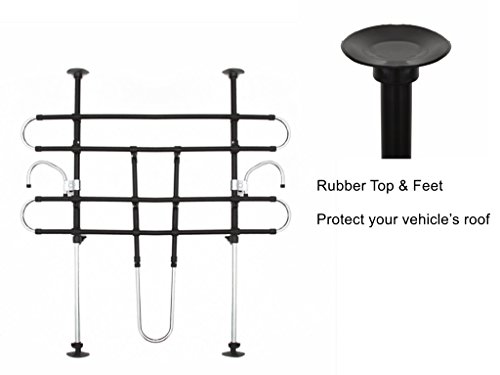 -. Feature : Dog guard length can adjust from 27.5" to 48.5",width can adjust from 33" to 57.5". / Main part is made of sturdy metal,rubbers are set in the top and bottom to protect interior. / Keeps pets contained in the rear of your vehicle so you can safely drive without any furry distractions. / Fits almost every SUV, van and wagon, and works great for dogs of all sizes. / A directions is included in the package,easy and fast to install in minutes follow it.