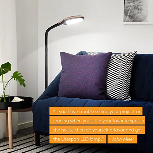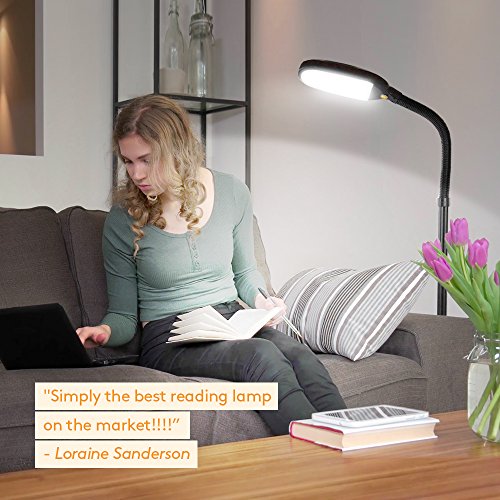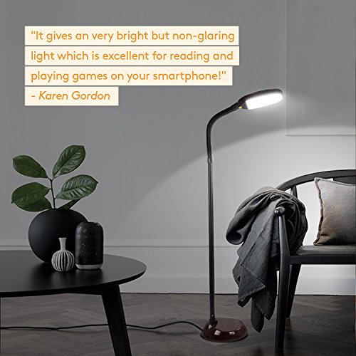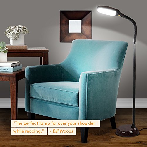 Brightech Litespan LED Reading and Craft Floor Lamp - Dimmable Full Spectrum Natural Daylight Sunlight LED Standing Light with Gooseneck for Living Room Sewing Bedroom Office Task – Black