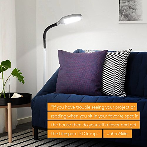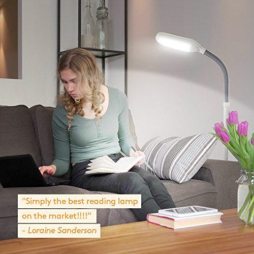 Brightech Litespan LED Reading and Craft Floor Lamp - Dimmable Full Spectrum Natural Daylight Sunlight LED Standing Light with Gooseneck for Living Room Sewing Bedroom Office Task – Alpine White
