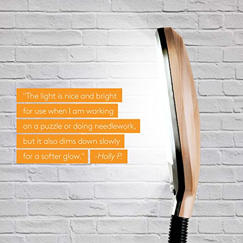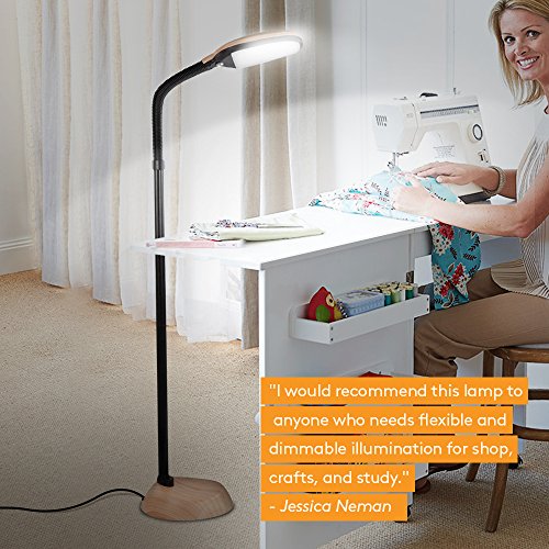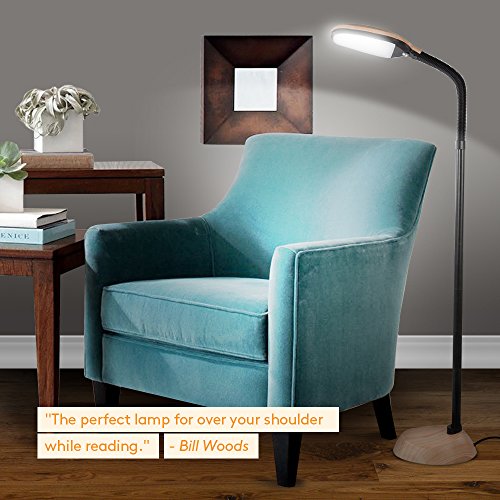 Brightech Litespan LED Reading and Craft Floor Lamp - Dimmable Full Spectrum Natural Daylight Sunlight LED Standing Light with Gooseneck for Living Room Sewing Bedroom Office Task – Natural Wood