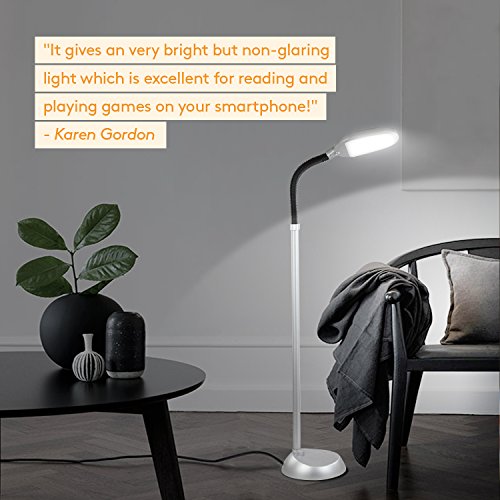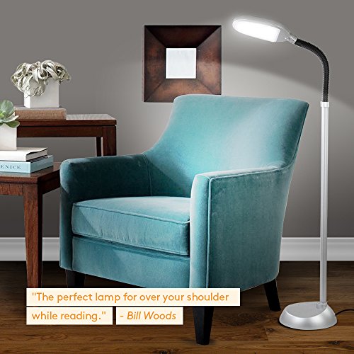 Brightech - Litespan LED Reading and Crafting Floor Lamp - Dimmable Full Spectrum LED Light - Fully Adjustable Neck - 12 Watts - Titanium Silver