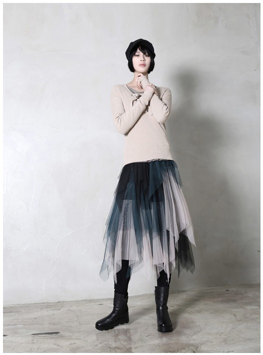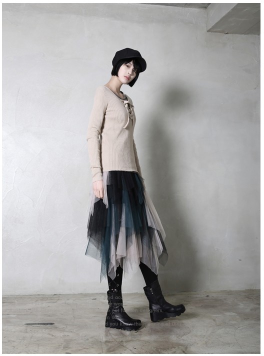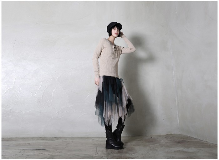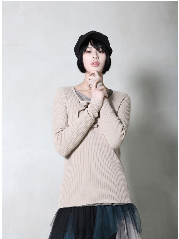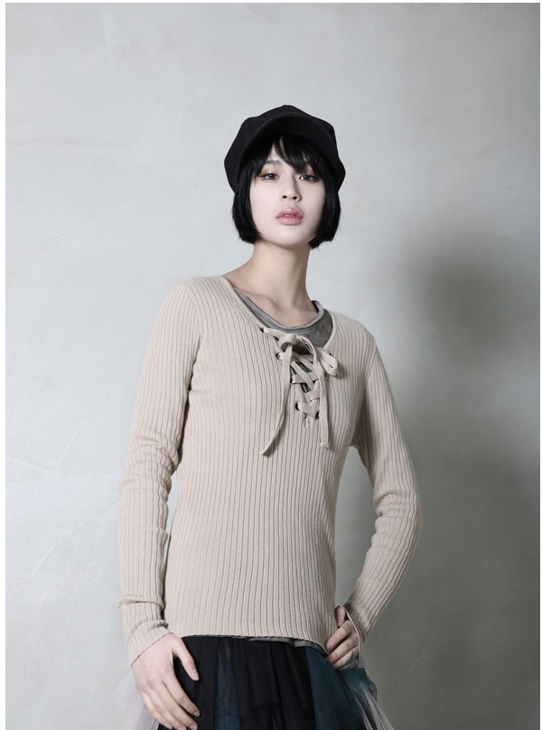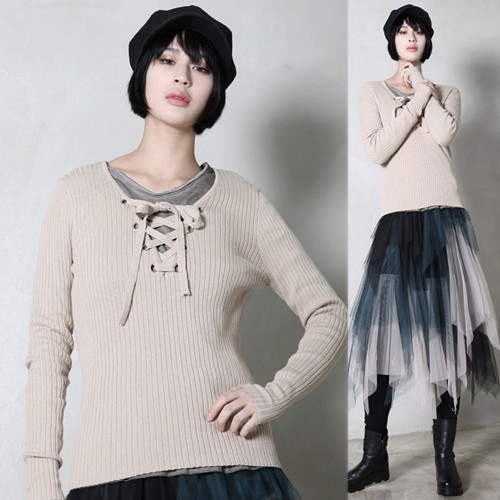 商品名:ニット レディース トップス 長袖 リブニット 春 2018 モード系 個性的 40代 ファッション