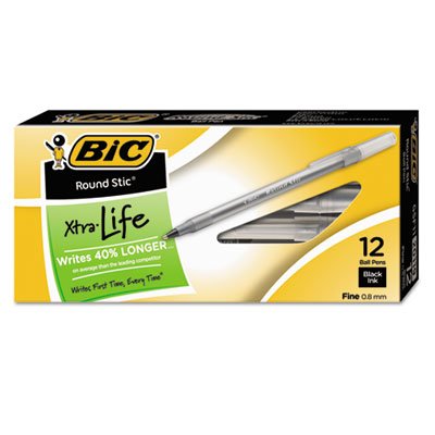 -. Title : Round Stic Xtra Precision & Xtra Life Ballpoint Pen, Black Ink, .8mm, Fine, DZ, Sold as 1 Dozen