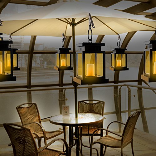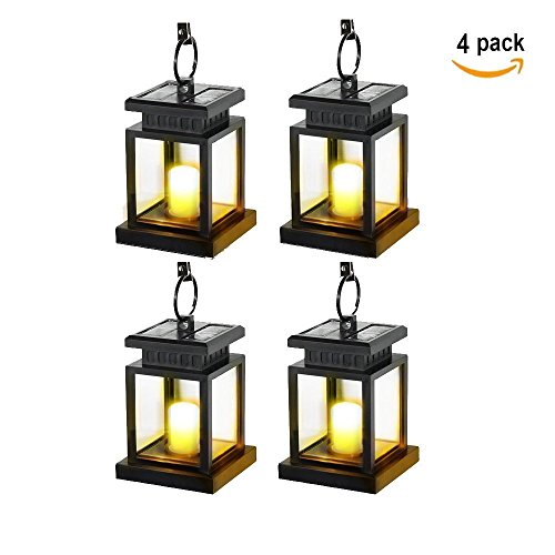 Kyson Solar Power Vintage Latern Candle Twinkle Effect 2 LEDs Outdoor waterproof Hanging Umbrella Garden Pathway Stairs wall Led Lamp Light Pack of 4