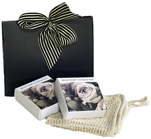 Caryl B Gift Set with Two Natural Soaps and Sisal Wash Cloth Mille Fleur Fragrance Fragrance, Floral