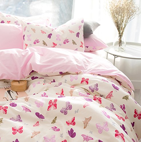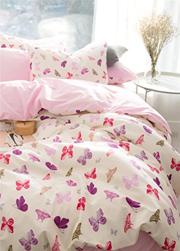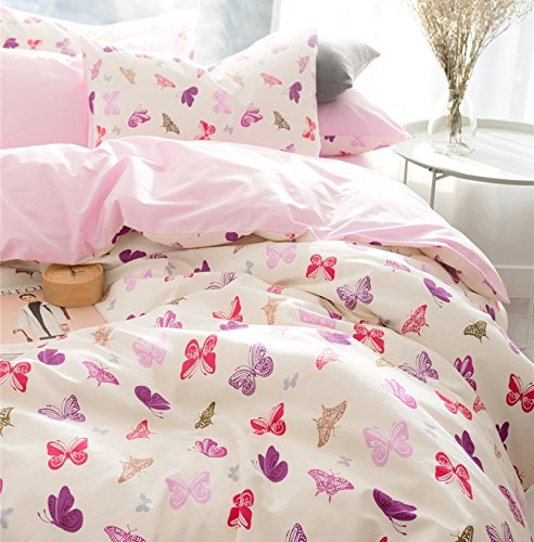 BRANDREAM PINK BUTTERFLY BEDDING CUTE CARTOON KIDS BEDDING SET TWIN FULL QUEEN SIZE