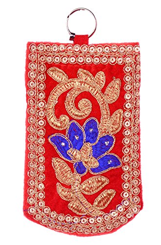 Embroidered iPhone Purse Paouch,Money Bag Paouch with Long Strap,Evening Bag For Women & Girls (Red Color)