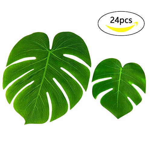 24Pcs Tropical Imitation Plant Leaves Palm Simulation Luau Decorations Supplies Summer Flowers Theme for Birthdays Prom Events Artificial Fronds Hawaiian Party Jungle Beach Weddings Green (24)