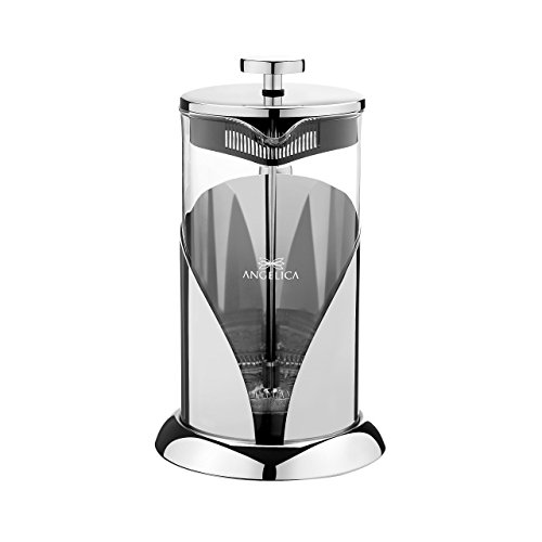 Sofia's Treasures | ANGELICA Stainless Steel & Glass French Press Coffeemaker & Tea pot, 34oz, 1000ml, 4.25 cup, 3-Mug Modern Durable Design for Classy Kitchens; w/Scoop & Brew Guide, makes great gift