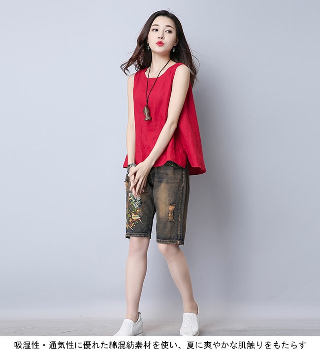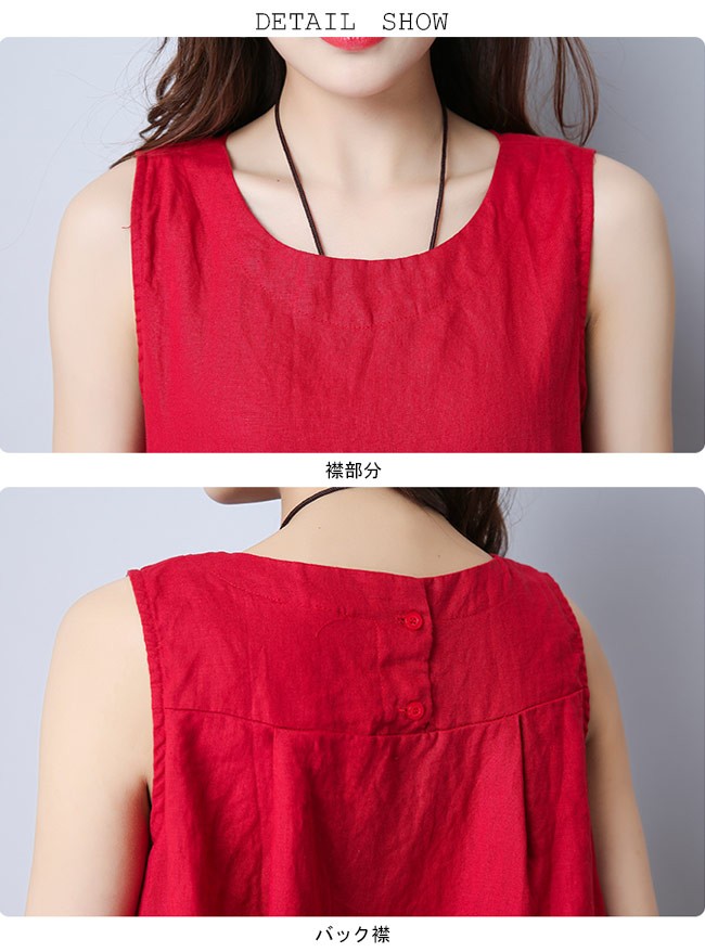 レディース タンクトップ 丸襟 体型カバー 女性用 トップス ノースリーブ Aライン 夏物 薄手 ゆったり レトロ Tシャツレディース用のタンクトップが登場吸湿性・通気性に優れた綿混紡素材を使い、夏に爽やかな肌触りをもたらすゆったりとしたAラインシルエットで解放感たっぷりの着心地、そして体型カバーも果たせるバック襟にボタン付きのデザインはとても優雅なアクセントを付けるパンツコーデにもスカートコーデにも似合い、シンプルなデザインにクラシックなカラバリで着まわしも効く一枚カラー:レッド ホワイト ブラック素材 綿混紡サイズ(cm) M L XL 2XLM 着丈70 バスト96L 着丈71 バスト100XL 着丈72 バスト1042XL 着丈73 バスト108ご注意:※サイズは平置きサイズです。素人採寸ですので、若干の誤差がございます、ご了承ください。