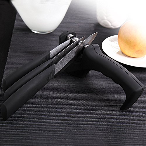 DESIGNED FOR SAFETY - The KUCHANG knife sharpener has been designed specifically to protect YOU! Unlike many other devices on the market, the KUCHANG sharpener has a large grip handle that allows you to effortlessly hold the knife sharpener steady during the sharpening process. Additionally, the feet are non-slip so the sharpener will not slide over the work bench either making this device extremely safe to use.