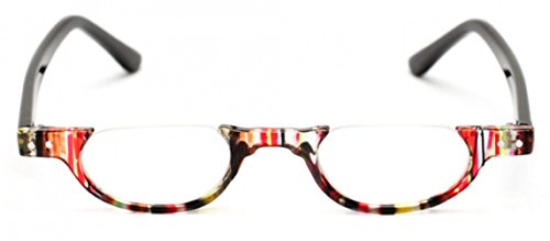 -. Feature : Aspheric Lenses to Minimize Scratching / Lens width: 53 mm, Lens height: 22 mm, Bridge: 23 mm, Arm: 135 mm / Fully Magnified Aspheric Clear Lenses. Available strengths: 1.00, 1.25, 1.50, 1.75, 2.00, 2.25, 2.50, 2.75, 3.00, 3.25, 3.50. Available colors: Brown Tortoise, Black and Tan Tortoise, Black and Tortoise, Brown Stripe, Red Stripe, Pink Blue Stripe and Orange Green Purple Stripe / Hard to find style at an Affordable P.R.Ice / Hand Polished Under Frame Glasses, Half Moon Shape