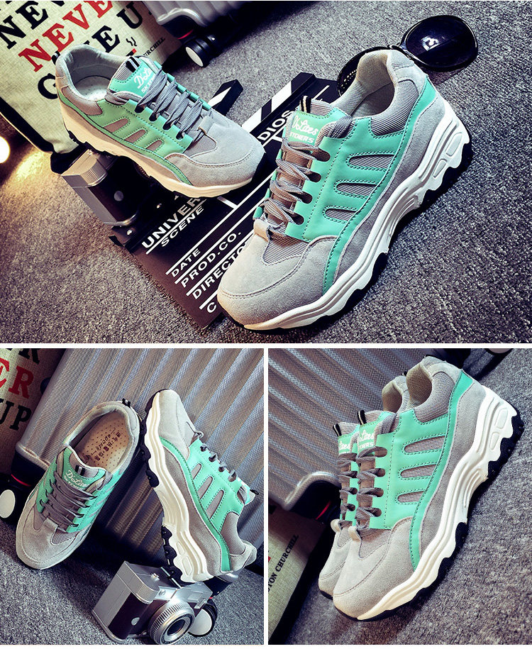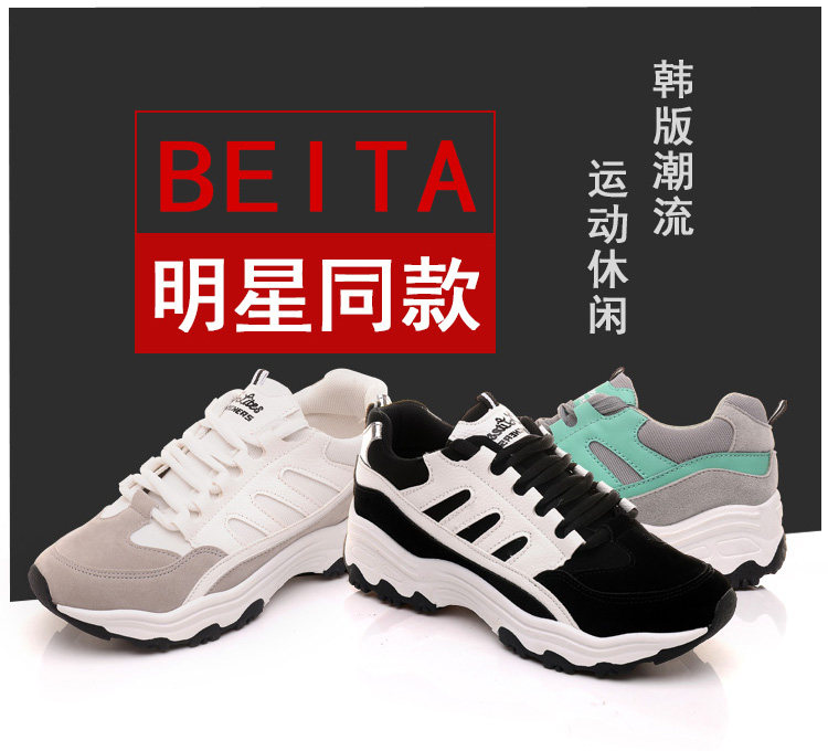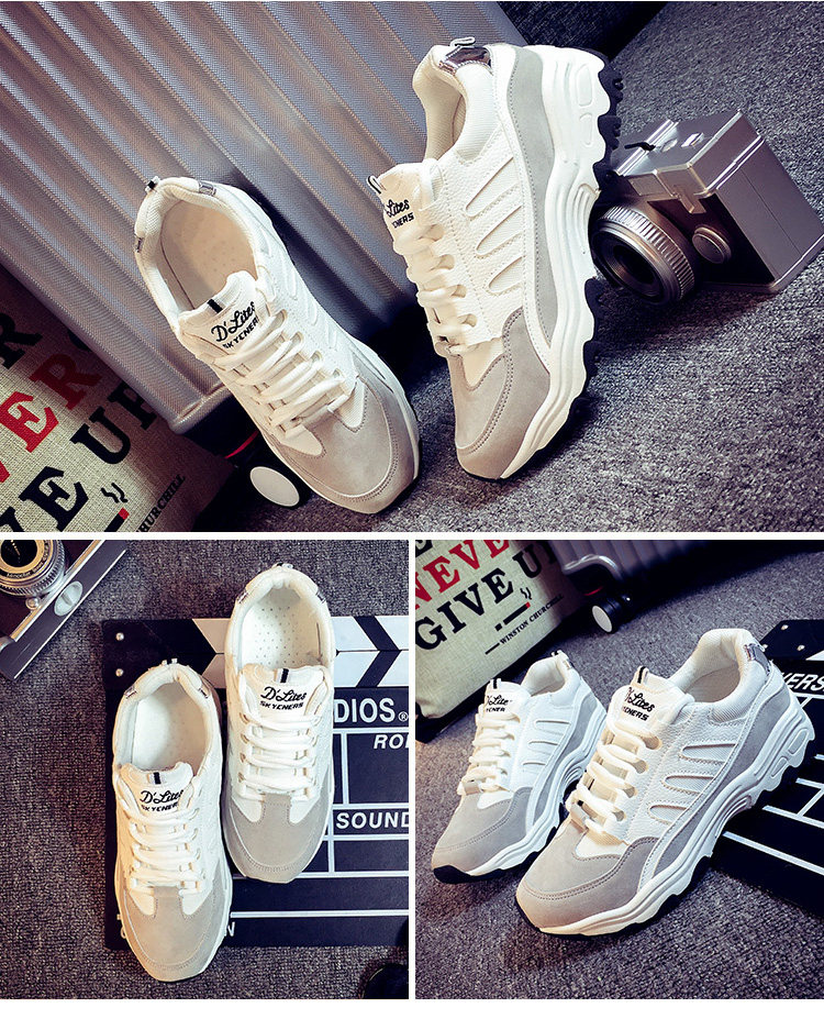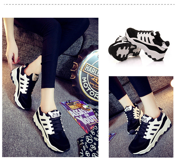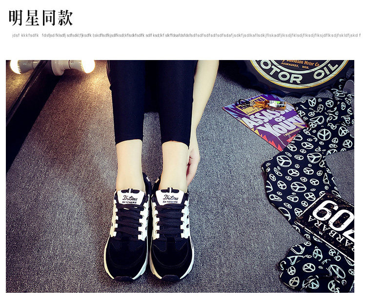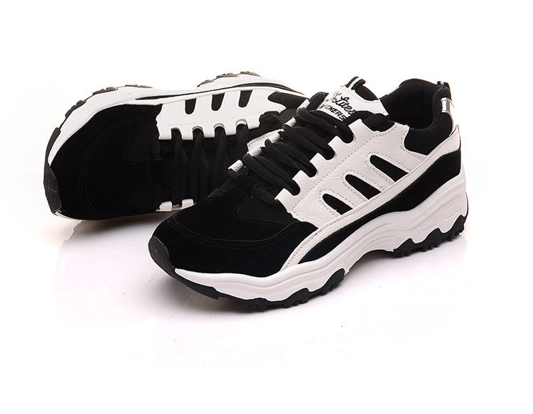 秋季运动鞋女跑步鞋 学生阿甘鞋黑色 厚底系带休闲鞋鞋子女韩版潮